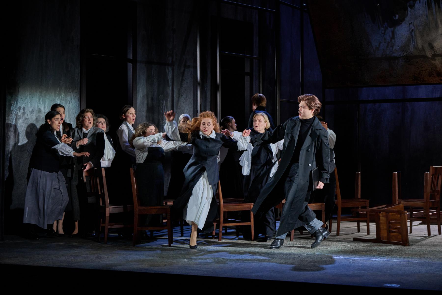 Mit diesem Schluss gelang Francis Poulenc eine der ergreifendsten Szenen der gesamten Musiktheaterliteratur. In seiner einzigen abendfüllenden Oper setzt sich der Komponist mit der wahren Geschichte der „Märtyrerinnen von Compiègne“ auseinander. Die Oper lotet wie kaum eine andere in teils schwelgerischer Melodik die Verwerfungen einer zutiefst verunsicherten und verletzten Seele aus. Sie wurde 1957 an der Mailänder Scala uraufgeführt und ist nun erstmals am Schleswig-Holsteinischen Landestheater zu sehen.