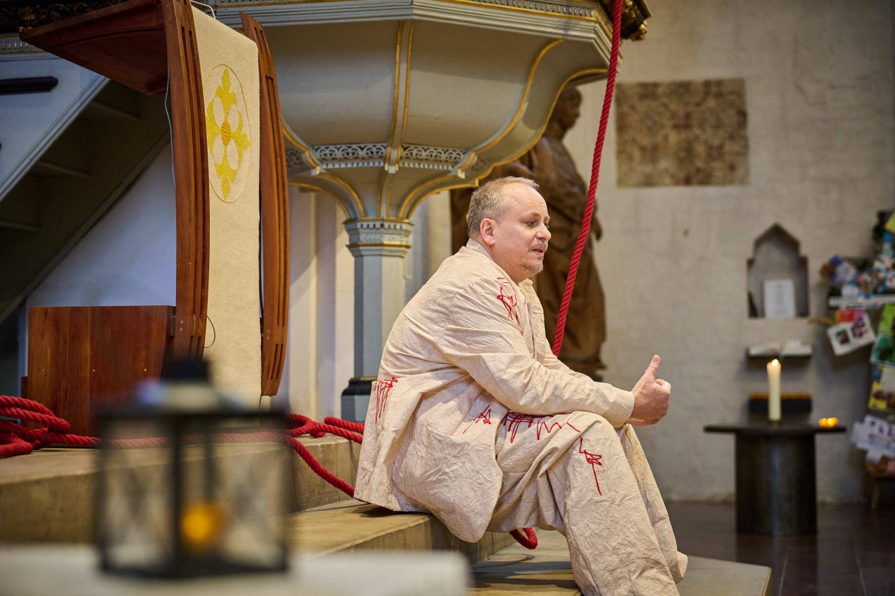 Er beging den ultimativen Verrat und das am Sohn Gottes. Judas, der Jünger Jesu, der ihn für dreißig Silberlinge verkaufte. Soweit ist die Geschichte bekannt, doch was brachte ihn dazu? Das kann nur er beantworten, und die renommierte niederländische Gegenwartsautorin Lot Vekemans gibt ihm die Möglichkeit dazu. Etwas unsicher versucht Judas, die Stimmung mit einem Witz aufzulockern, denn er kennt seinen Ruf. Verstanden zu werden, verlangt er nicht. Es reicht ihm, wenn das Publikum zuhört. Als Mensch spricht er zu Menschen und erzählt von sich und seiner Vergangenheit. Vor allem aber stellt Judas Fragen: Spielt es eine Rolle, was er getan hat? Was wäre mit ihm passiert, mit Jesus und dem Christentum, wenn er treu geblieben wäre? War es nicht eigentlich er, der die Sünden der Welt auf sich genommen hat?